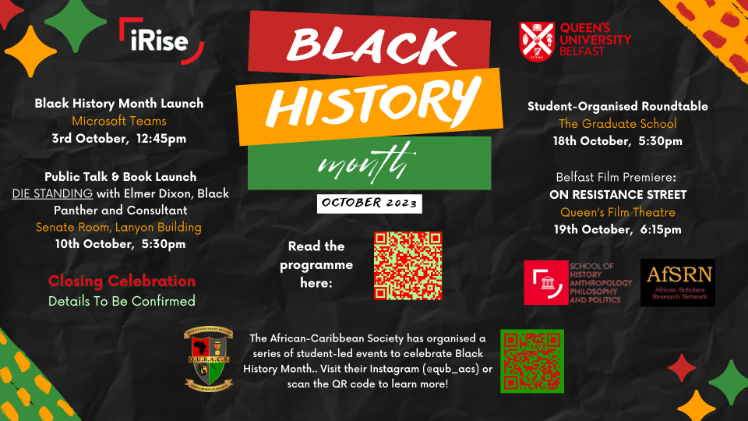 The QUB African Caribbean Society has organised a series of student-led events to celebrate Black History Month.