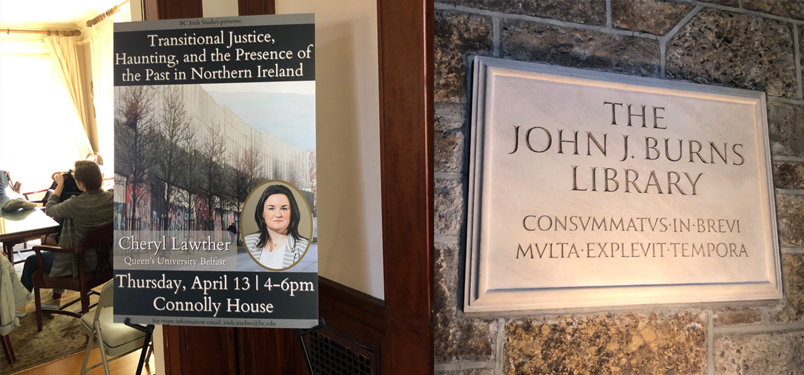 In addition to these events, I had the opportunity to engage with Irish Studies students at Boston College, teaching a graduate class on ‘Dealing with the Legacy of the Northern Ireland Conflict’ and participating in a series of lunches and conversations across campus. The commitment shown by the students and their interest in all things Northern Ireland left me feeling reassured that the future of Irish studies is bright!