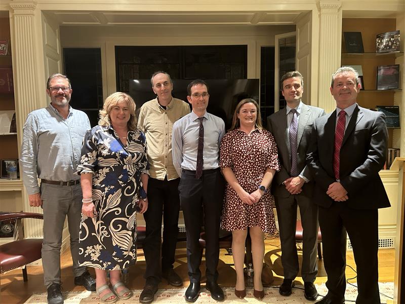 Sínghle FitzGerald (Irish Consule General), Eamon McConville (Deputy Director Northern Ireland Bureau), Andrew Elliott (Director Northern Ireland Bureau), and Tom Nickalss (Deputy Consul General).