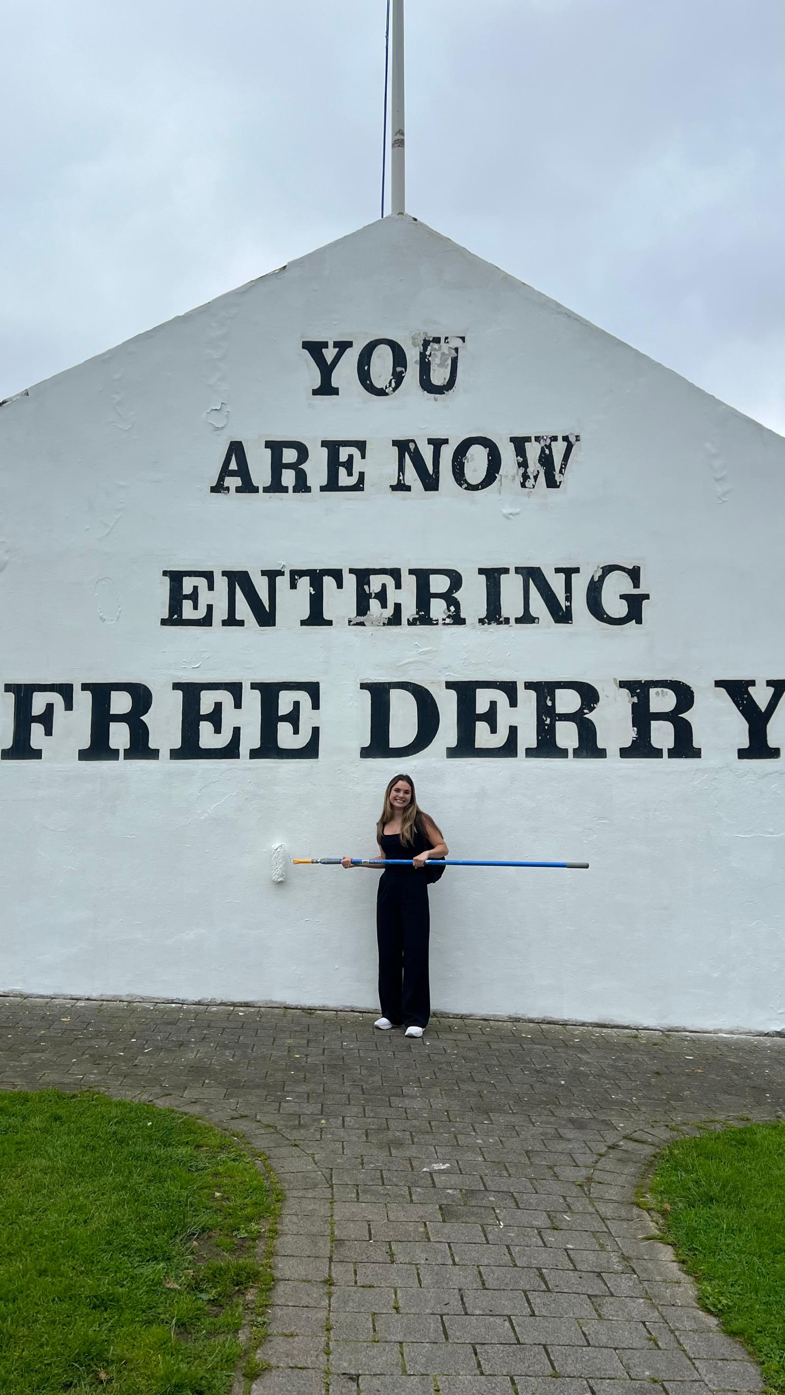 When I was not at the Institute or reading in the McClay Library, I went on walks around the campus and the greater Belfast area (I averaged 8-12 miles a day). The contrast between the loyalist and republican communities was stark. Having never visited Northern Ireland, I did not realize just how many flags, symbols, and murals I would encounter. I went on a solo day trip to Derry and I was in awe of the political murals and symbols. I made my way to the Bogside murals and I noticed that a man was repainting the Free Derry Corner. I introduced myself, and he briefly told me his story. He was 12 years old during the Battle of the Bogside—I can’t begin to imagine what it was like. This unexpected encounter really humanized the conflict for me. Reading history is one thing, but putting a face to history is so much more powerful.