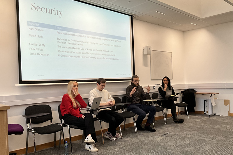Pictured L-R: Karli Gibson (final year, HAPP), David Marc (final year, EEECS), Felix Elliott (second year, SSESW), Enas Abdelfatah (first year, HAPP).