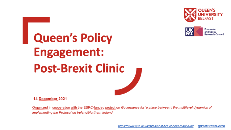 The Post-Brexit Clinics have been open to the public and organized in collaboration with Queen’s Policy Engagement team and have provided regular academically-informed assessments of key developments in the Brexit process and the implementation of the Protocol on Ireland/Northern Ireland.