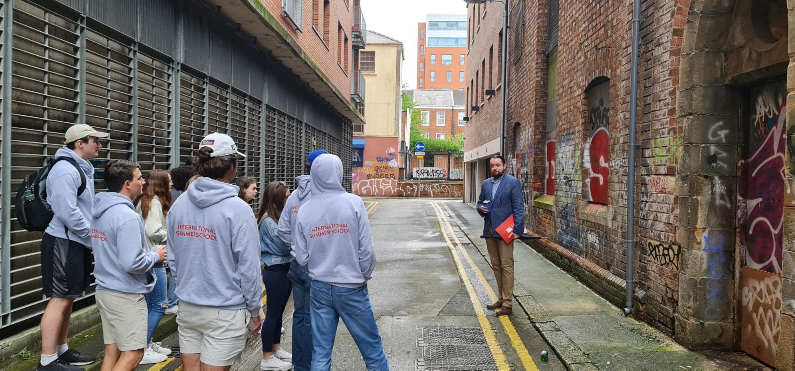 One of the programme highlights was a visit to the Market community in South Belfast. The students embarked on a guided walkabout led by Fionntán Hargey of the Market Development Association, immersing themselves in the rich history and heritage of the area. This provided an opportunity for them to understand the complexities and narratives that shape our urban communities.